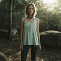 An easy tank in our natural aloe green tone, cut from 100% GOTS‑certified organic cotton. Soft on skin with a clean scoop neck and wide straps—made to throw on and go.